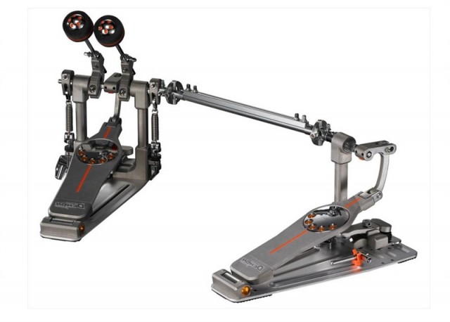 Двойная педаль "кардан" Eliminator Demon Drive для бас барабана, регулируемый прямой привод, подшипники низкого трения, соединительный механизм z-link, регулировка кулачка держателя колотушки, двойной футборд, замок для сохранения натяжения пружины, изменение положения футборда по выстоте, фетровая колотушка, кейс в комплекте.