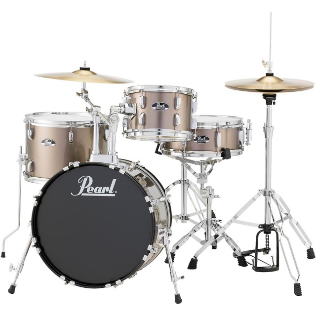 Комплектация: стойка под тарелку прямая, стойка для хай-хэта, стойка под рабочий барабан, одиночная педаль для бас бочки, стульчик, 2 держателя томов, 16" крэш и 14" хай-хэт, барабанные палочки (2 пары), сумка для палочек, плакат Pearl Drum