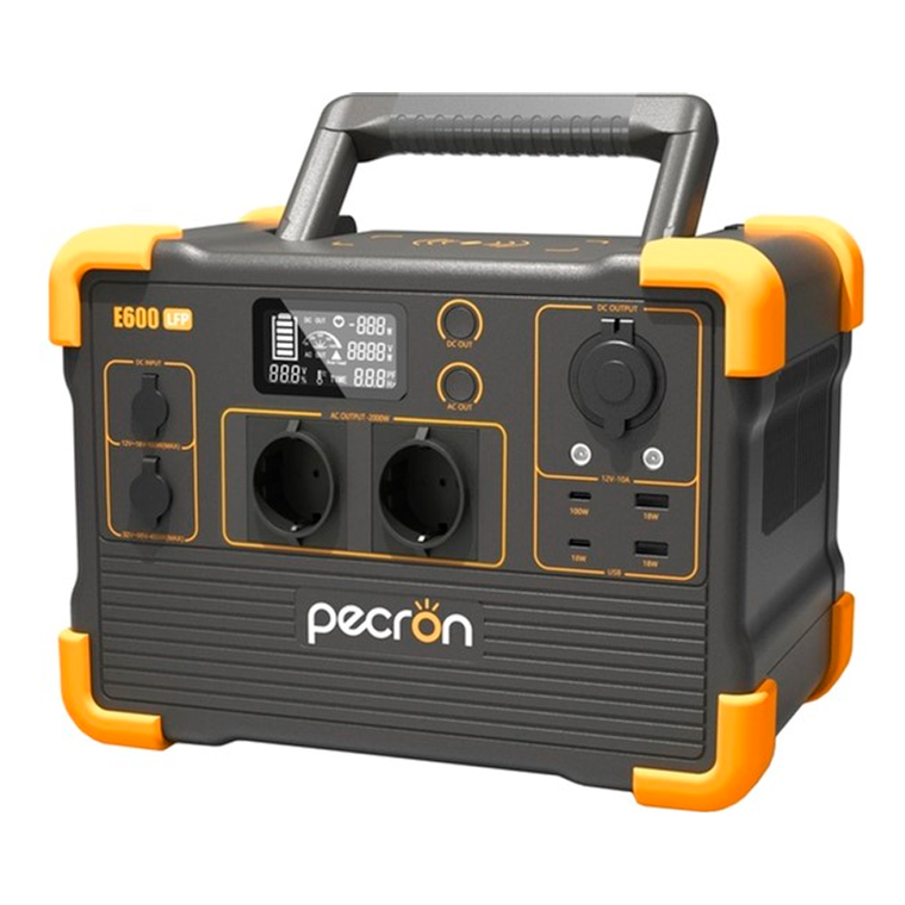 Power station Pecron E600LFP, 614 / 1200Wh LiFePO4, MPPT VOC 32-95 В, DC12 / 24V, 2хAC 220, 2xUSB-18W, 2хUSB-C(100W), wireless 15W, charge 80min, 298×198×215mm, 9.4kg