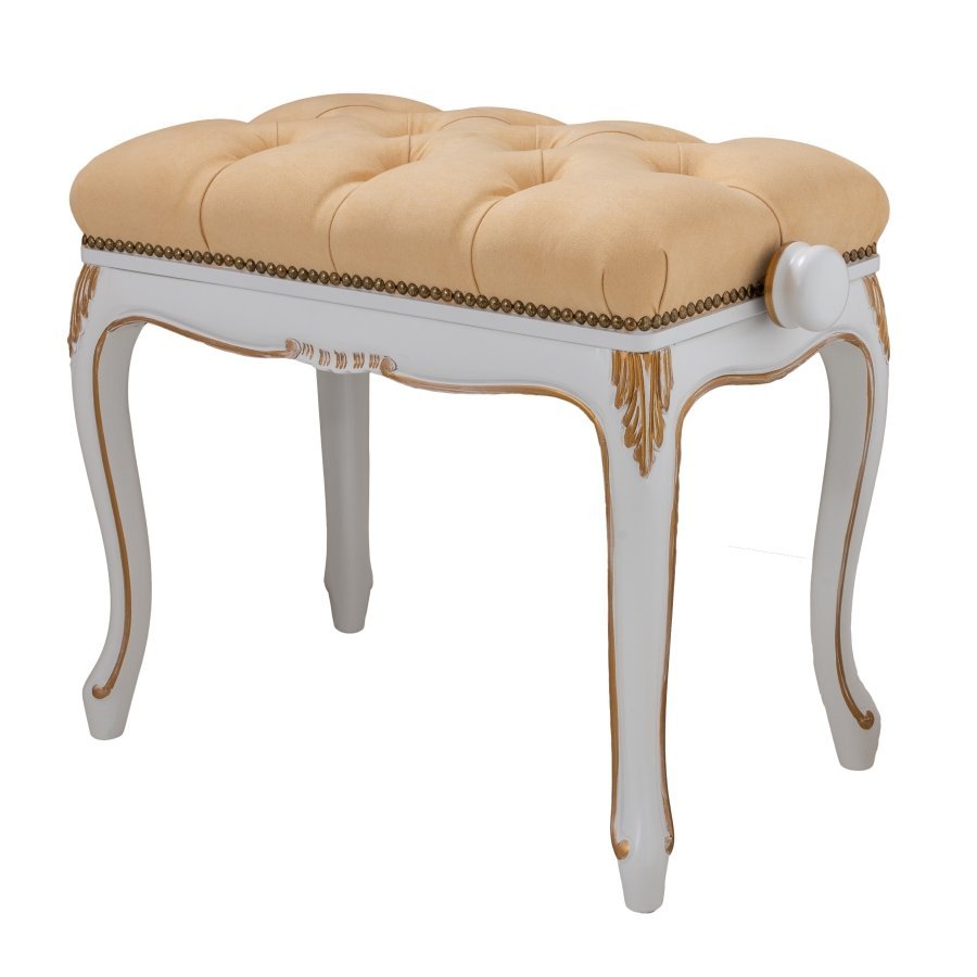Банкетка с тиснением в стиле Рококо, рекомендуется к инструменту P 118 R1 Rococo, регулируемая высоты 470-570 мм, ширина 570 мм, глубина: 340 мм, производство: Италия, цвет: глянцевый белый (полированный лак).