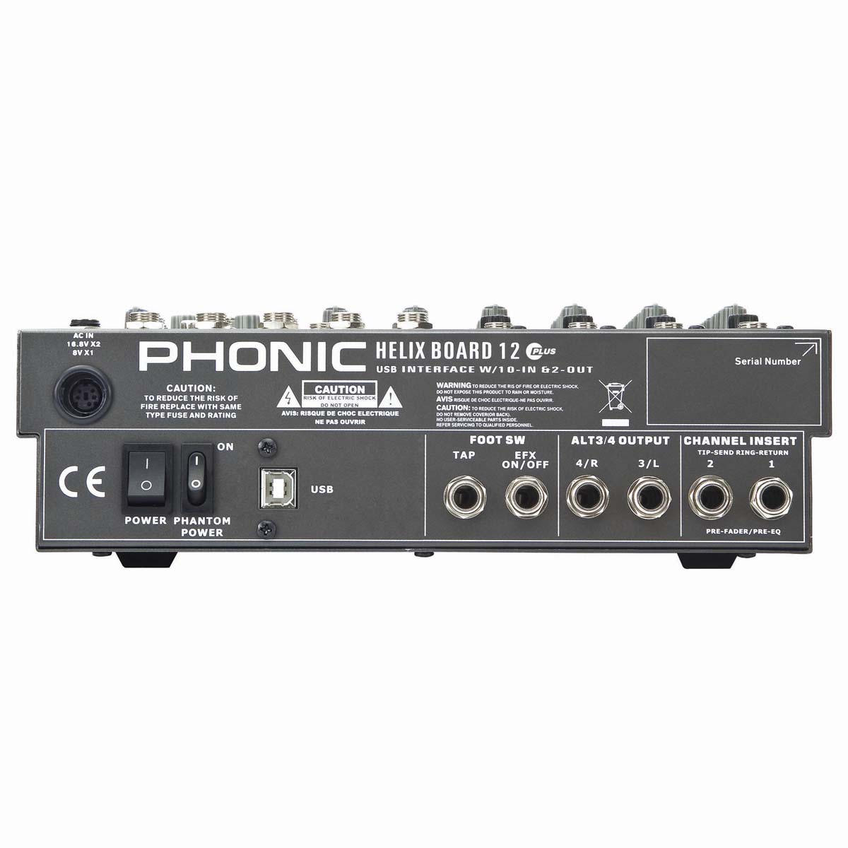 Phonic Helix Board 12 Plus - аналоговый микшерный пульт с USB интерфейсом и 32-битным процессором эффектов, 3-х полосными эквалайзерами на всех каналах. Моноканалы оборудованы отключаемым high pass фильтром, отсекающим частоты ниже 75Гц (18 dB/окт), что обеспечивает удаление нежелательных шумов и низкочастотных наводок. Стереоканалы имеют переключатель входной чувствительности (+4/-10 dB).