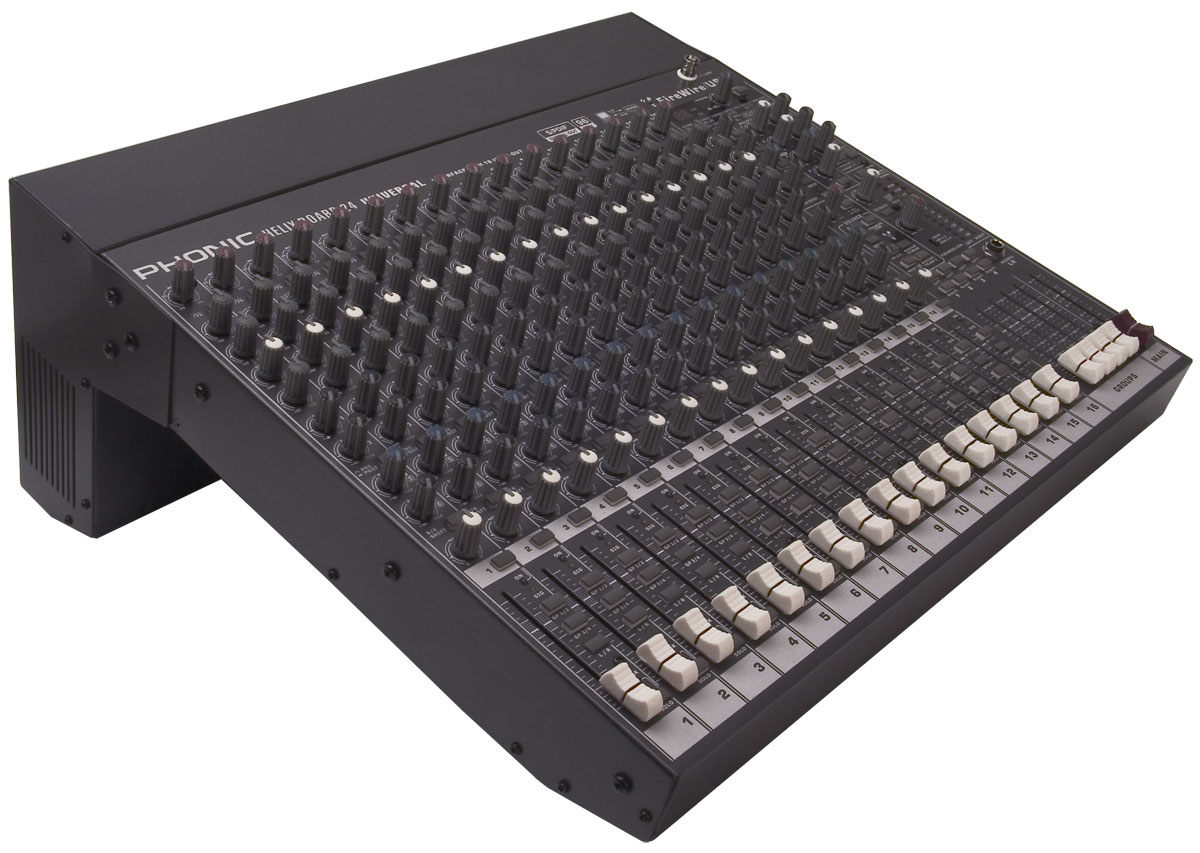 Phonic Helix Board 24 Universal - аналоговый микшерный пульт оснащенный USB и FireWire интерфейсами, S/PDIF, 32/40-битным процессором эффектов, 3-полосными эквалайзерами с параметрической серединой на всех каналах и многим другим. 16 микрофонных каналов оборудованы отключаемым high pass фильтром, отсекающим частоты ниже 75Hz (18 dB/окт), что обеспечивает удаление нежелательных шумов и низкочастотных наводок. Стереоканалы (11/12 и 13/14) имеют переключатель входной чувствительности (+4/-10 dB). Дополнительный выход Mono/Subwoofer используется для сигнала с главной шины (Main L/R), AUX4 или для подключения сабвуфера (регулируемый Low Pass фильтром (60Hz - 160Hz).