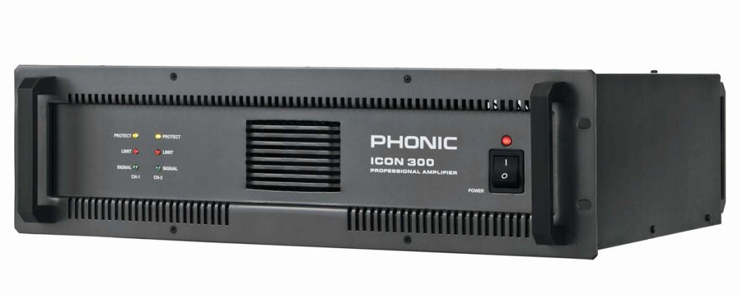 Phonic ICON 300 - двухканальный (2 независимых усилителя) трансляционный усилитель мощности. Работает как с постоянным напряжением (трансформатор): 25V, 70V, 100V (Мост: 140V или 200V), так и в низкоомных режимах: 8, 4, 2 Ома. Имеет встроенный инфразвуковой фильтр 45 Hz, защиту от перегрузки, короткого замыкания, перегрева: принудительное охлаждение, двухскоростной вентилятор.
