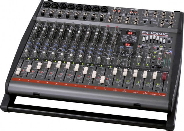 Активный 12-канальный микшерный пульт с двумя встроенными 32-х битными DSP процессорами, мощность 2х500 Вт (4 Ома), 8 комбинированных входов XLR/Jack, Insert разъемы, 2 канала XLR + 2 x Jack, 2 AUX, 2 x Stereo Return, L/R и Mono, входы Type In (RCA и Mini TRS Jack), Rec Out (RCA и Mini TRS Jack), 2 x EFX Out, фильтр high pass 60-160 Гц, 3-х полосный эквалайзер с регулируемой серединой на микрофонных каналах, 7-ми полосный графический стерео эквалайзер, 100 эффект пресетов, фантомное питание, 483 x 142 x 466 мм, 14.3 кг.