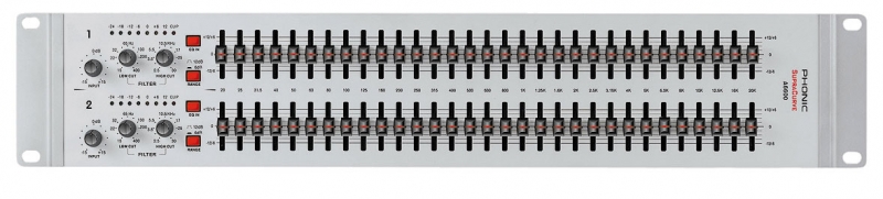 Phonic A6600 - высококачественный графический стерео эквалайзер сочетает в себе лучшие характеристики оснащения и надежность. Два ряда 30 мм фейдеров для точной настройки имеют фиксацию в центре.