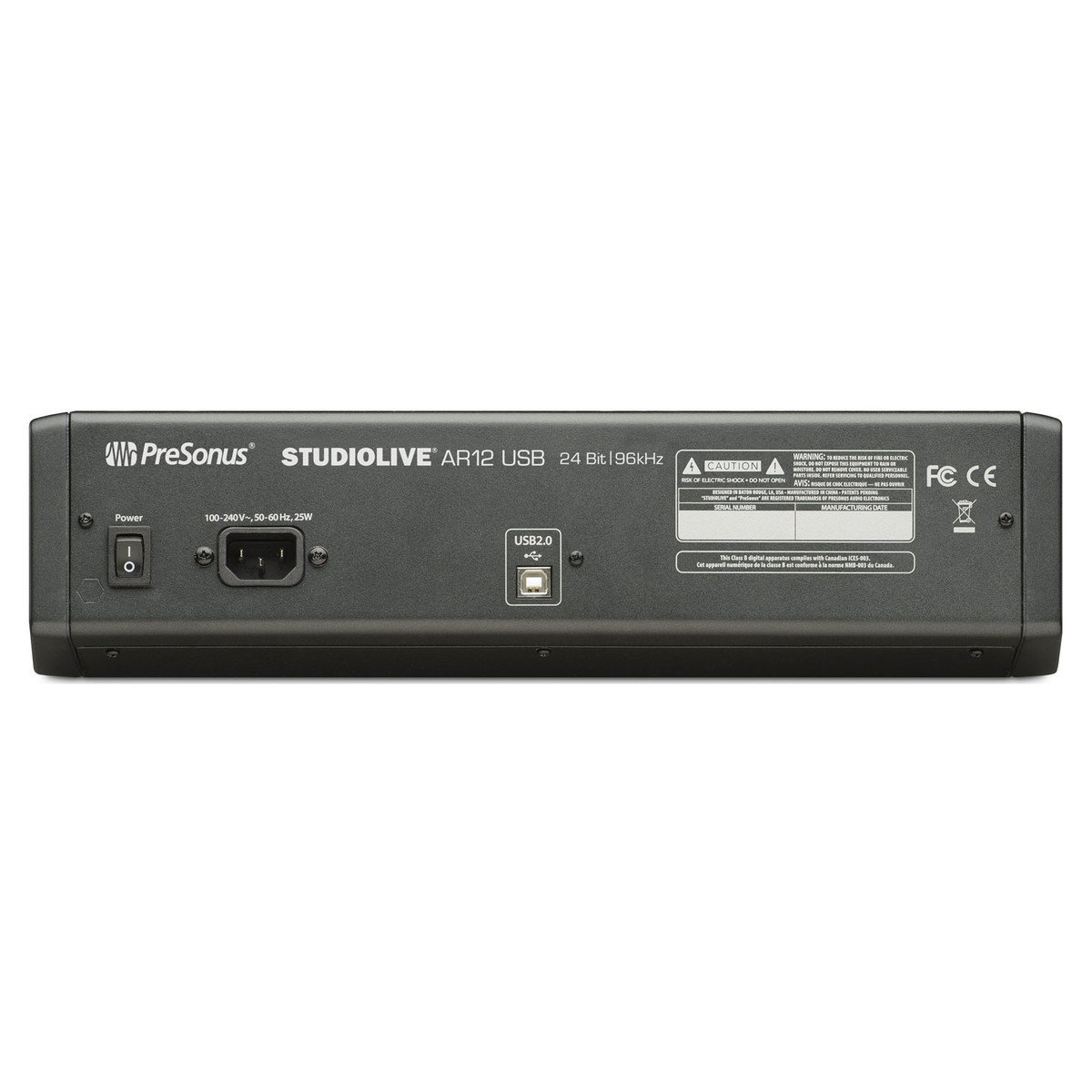 Каждый из 4 моно и четырех стерео каналов включает 60 мм фейдеры для контроля уровня, микрофонный вход с одним Class A предусилителем и 3-х полосный эквалайзер. Помимо основных выходов, вы получаете 2 выхода monitor mix, каждый с отдельной шиной, усилитель для наушников или мониторов. Поскольку USB StudioLive AR12 предназначен для студийной работы, вы также получаете контрольно-студийные выходы с регулятором уровня.