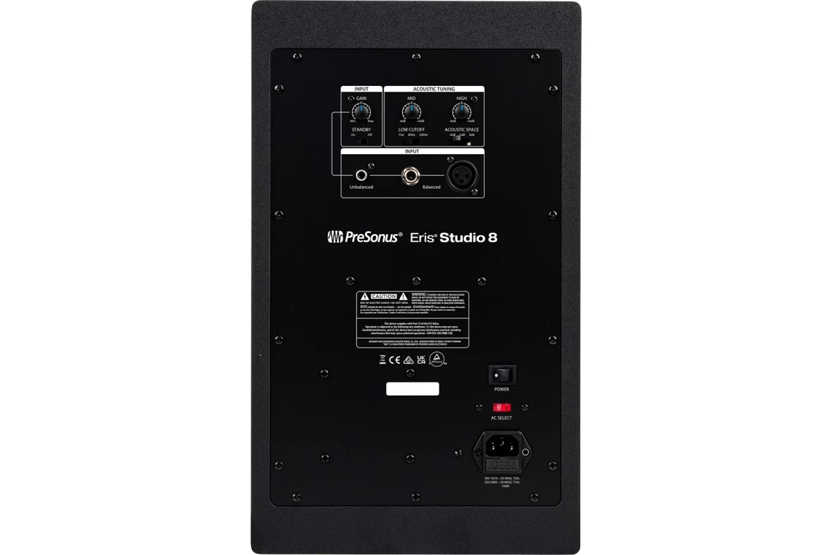 Eris Studio 8 оснащены элементами управления Acoustic Tuning, чтобы обеспечить наилучший отклик в вашей среде микширования. Вы получаете регуляторы Low Cut, Mid и High, а также трехпозиционные настройки Acoustic Space, позволяющие легко компенсировать усиление низких частот, возникающее, когда динамик размещен слишком близко к стене.
