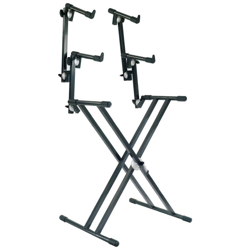 Профессиональная трехуровневая Х-образная регулируемая клавишная стойка с системой SNAP LOCK, нагрузка кг: 1 - 40; 2 - 20; 3 - 10 кг, высота: 560 - 970 мм, длина держателя: 400 мм, вес 4.2 кг.