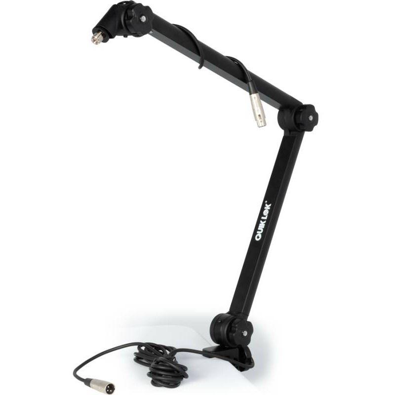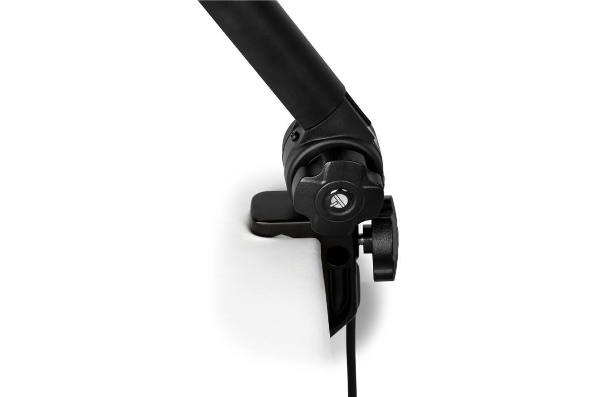 Алюминиевый пантограф с 5 метровым XLR кабелем, крепление: жесткое (фланец) или зажим (стол толщиной до 50 мм), нагрузка на стрелу до 1 кг, длина стрелы 40 см и верхней секции 50 см, масса 1.74 кг, цвет: черный.
