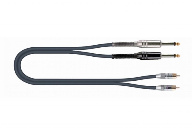 Несимметричный двойной кабель, 2x 1/4 TS Jack (папа) - 2x RCA (папа), длина: 6 м, цвет: черный.