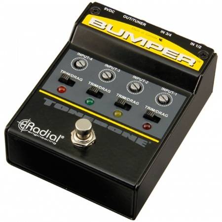 Педаль коммутатор, 4 Jack входа, 1 Jack выход, Jack выход на тюнер, корректор уровня сигнала на каналах, переключатель TRIM/DRAG.