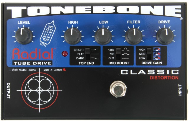 Педаль предусилитель, 3-позиционный переключатель дополнительного предусиления (0, + 7 или +12 дБ), фильтр низких частот с регулятором частоты среза, лампа 12AX7, холодный байпас.