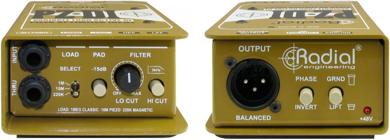 Активный DI-box для пьезодатчиков, небалансный вход, сквозной канал, балансный XLR выход, инверсия фазы, переключатель контура заземления, аттенюатор -15 дБ, ВЧ фильтр, НЧ корректор, +48В питание.