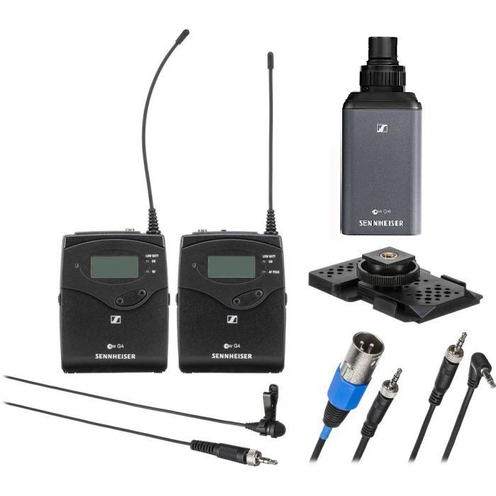 Накамерный приемник, поясной передатчик с петличным микрофоном MKE 2 и XLR передатчик с фантомным питанием, ИК синхронизация, до 32 совместимых каналов, радиус действия до 100 м, до 8 часов работы..