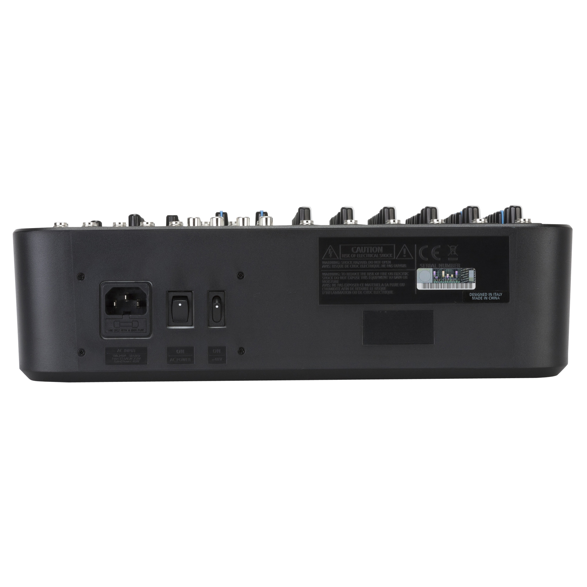 12 каналов, 6 микроф/лин. входов (48V питание),4 стерео входа,60 мм фейдеры, встроенный компрессор, 1 AUX PRE/POST SEND/1 FX SEND, 3-х/2-х полосные EQ, НЧ фильтр 75 Гц, CONTROL ROOM, выход 2TRACK.