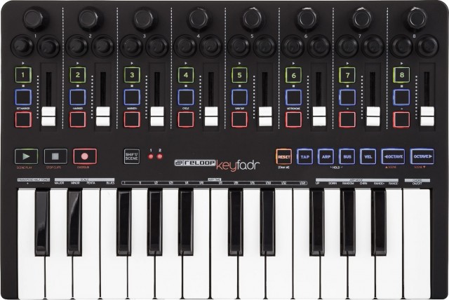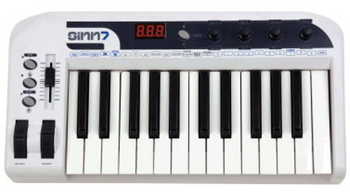 Компактная USB MIDI-клавиатура с 25 чувствительными мини клавишами и 16 пэдами, контроллеры: 8 фейдеров с энкодерами (Pan), 2 ручки управления и 3 кнопки (Mute, Solo, Rec), в комплекте: Ableton Live Lite 9.