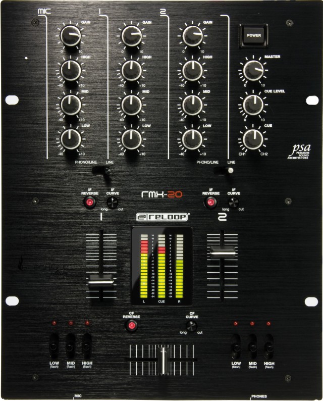 Профессиональный 2-х канальный Dj-микшер, звук Premium Sound PSA, TCT кроссфэйдер 45 мм, линейный 60 мм, 3-х полосный по канальный эквалайзер, KILL-эквалайзер.