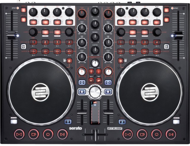 Midi-контроллер, 2 JOG колеса с сенсорной технологией управления, 4-канала (Phono/Line), USB аудиоинтерфейс 16bit/48kHz, 73 контроллера управления, 1 микрофонный вход Jack, стерео RCA выходы.