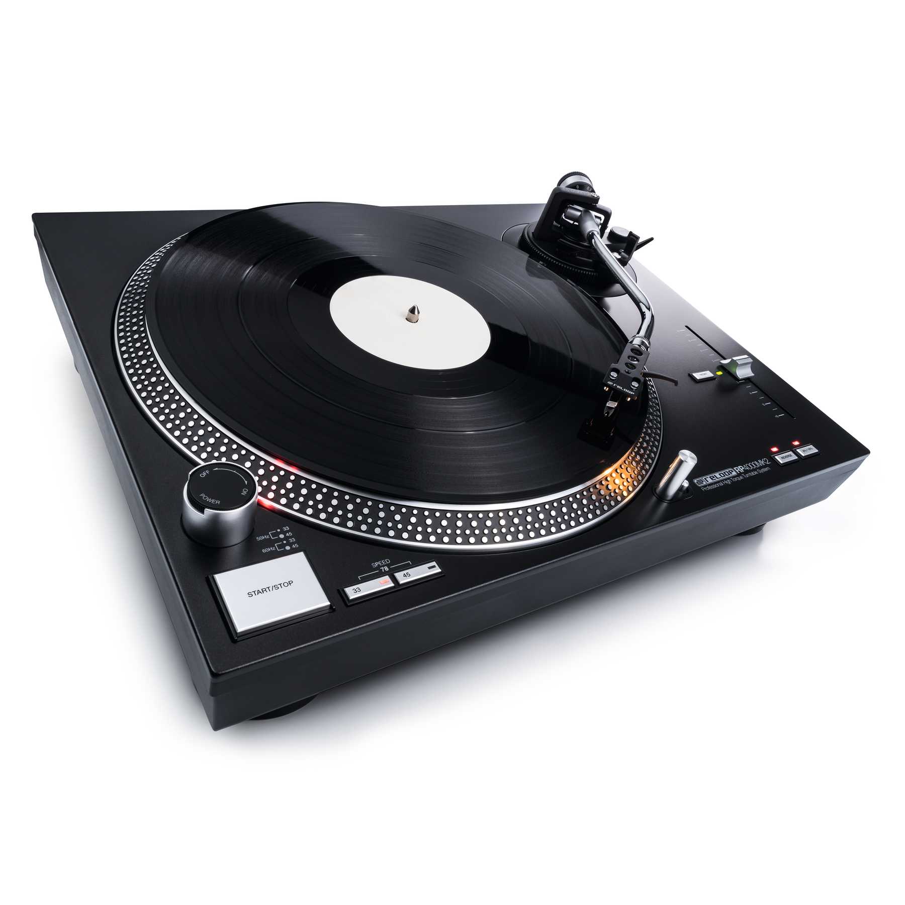 RP-4000 MK2 - це надійний DJ програвач для досвідчених користувачів. Нова версія MK2 включає в себе декілька покращень, включаючи нещодавно розроблену верхню панель та перероблені металеві кнопки. Прямий кварцовий привід З швидкості (33 1/3, 45, 78 rpm) Пусковий момент:> 1.8 kg / cm Час старт / стоп: 50 dB (DIN-B) Розміри: 450 x 352 x 144 мм Вага: прибл. 9.8 кг Включає OM Black картридж (by Ortofon), headshell, сліпмат