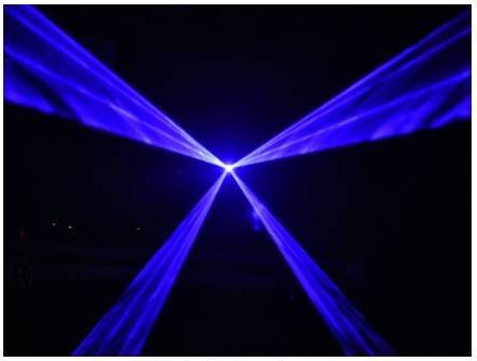 Мощный синий лазер 500 мВт, DMX вход/выход, звуковая активация, автоматические программы, регулировка чувствительности, металлический корпус.