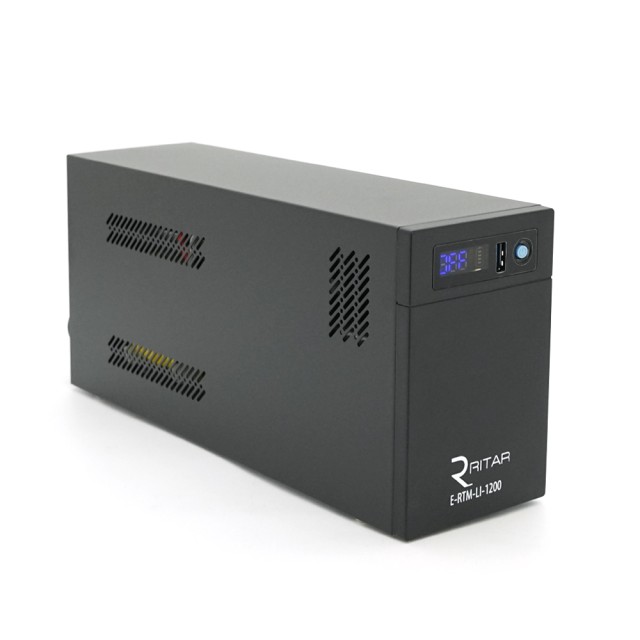 Джерело безперебійного живлення (ДБЖ) Ritar E-RTM-LI-1200 є компактним пристроєм з LCD-дисплеєм, стабілізатором напруги (AVR) і двома розетками SCHUKO. Він оснащений літієво-залізо-фосфатною батареєю ємністю 25,6V154WH, має металевий корпус розміром 305x85x141 мм і вагою 5 кг. Габарити упаковки складають 372 х 278 х 440 мм. Характеристики: