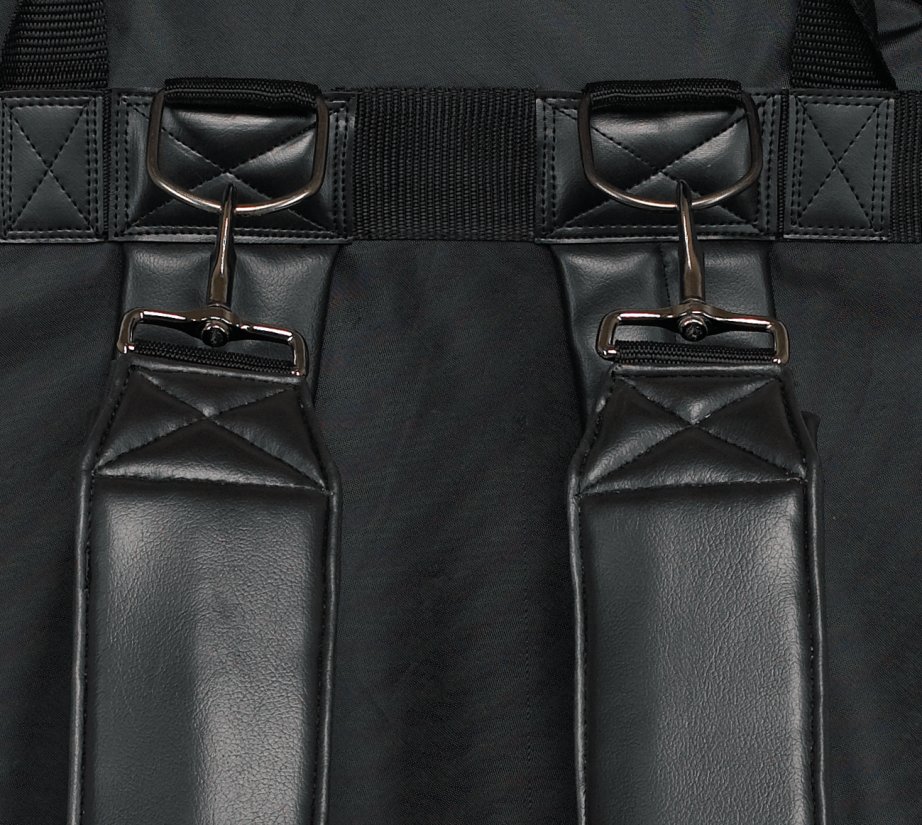 - Два знімних ременя на металевих карабінах, регульованої довжини, забезпечені пом'якшувальними підкладками 50 мм для комфортного транспортування на спині