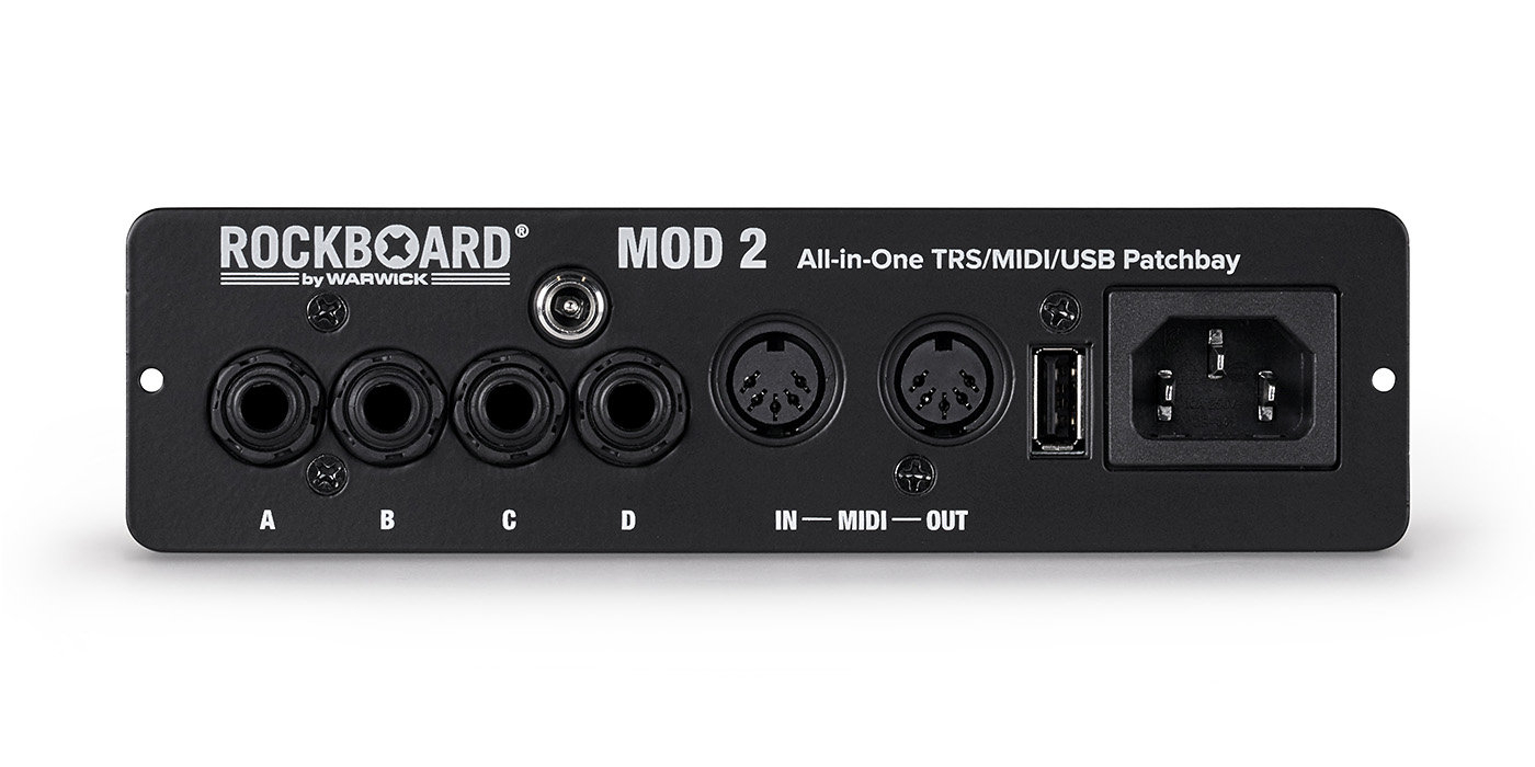 RockBoard® MOD2 стане незамінним помічником для підключення до MIDI-сумісних підсилювачів, процесорів ефектів та інших пристроїв, а наскрізне USB-з'єднання дозволить миттєво підключити ваш педалборд до комп'ютера або аудіоінтерфейсу. Чотири TRS-роз'єми чудово працюють не лише з педалями, але й з будь-якими джерелами стереосигналу. І звичайно, ви можете використовувати їх для підключення окремих педалей в петлю ефектів підсилювача або як основний вхід/вихід.
