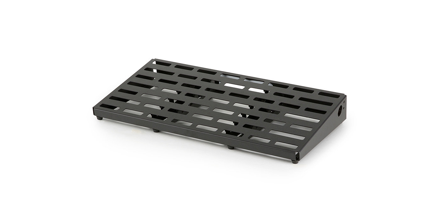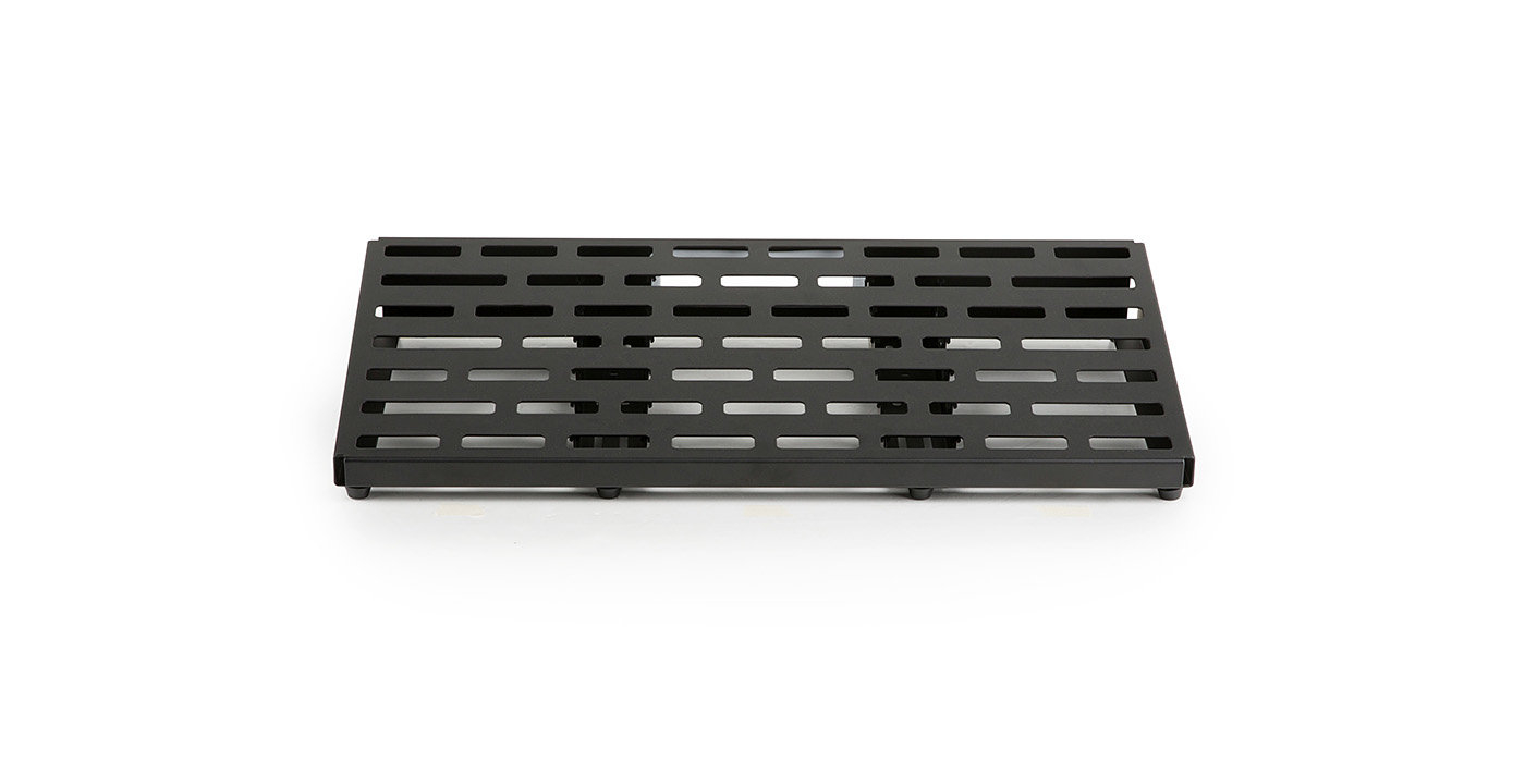 Конструкція педалборду виготовлена зі стійкого легкого алюмінію, що забезпечує міцність і стабільність. Основна поверхня складається з одного зігнутого аркуша холоднокатаного алюмінію з U-подібними вертикальними скобами для додаткової стійкості. Інноваційний слотований дизайн дозволяє приховати комутаційні кабелі і розмістити від 9 до 15 педалей. Крім того, педалборд поставляється із фірмовою сумкою для зручності транспортування та зберігання.