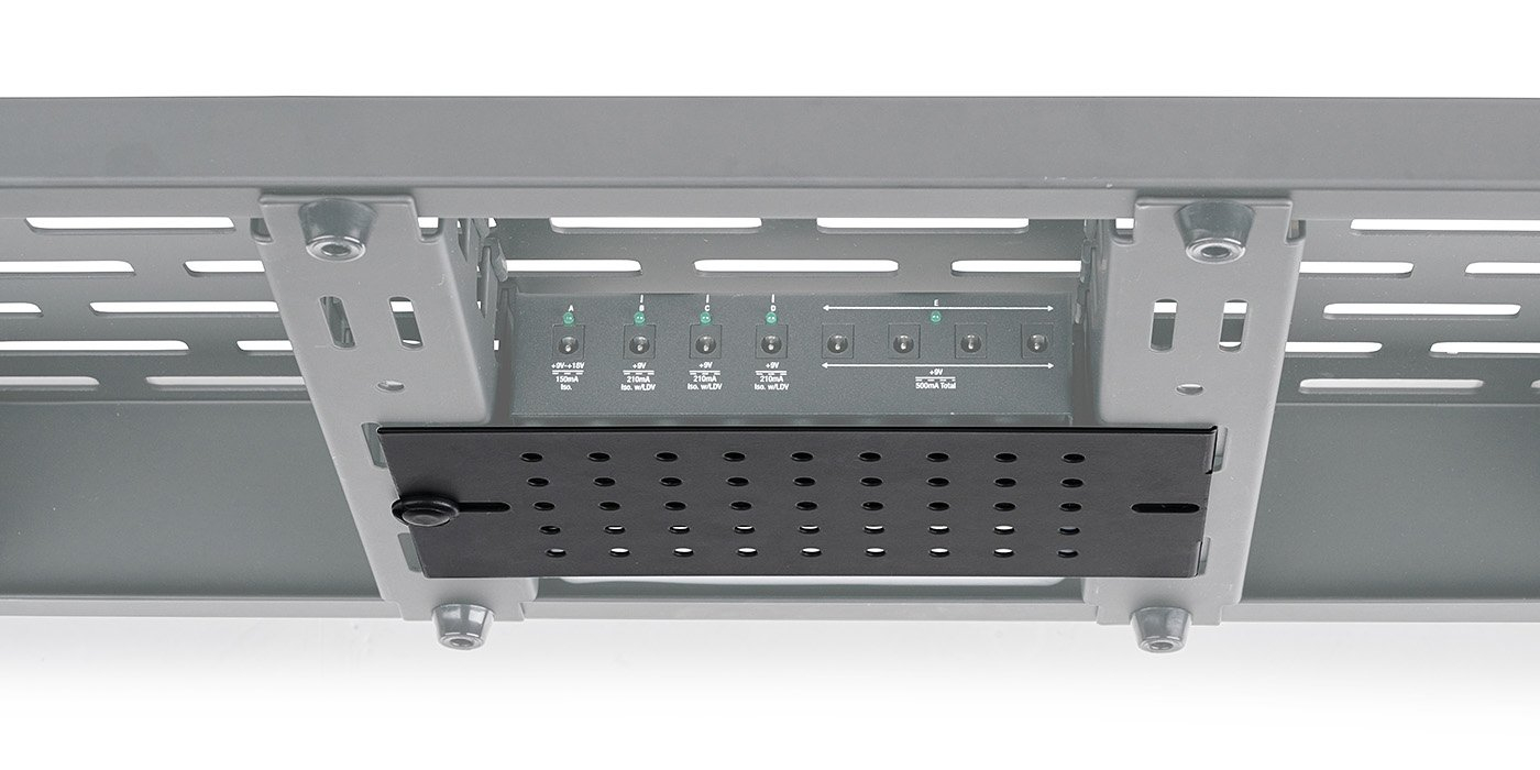 RockBoard® presents a new solution - The Tray, a universal mounting option for almost any power supply unit on your pedalboard. Its versatile design allows for installation under any RockBoard® 2019 model pedalboard (excluding Duo 2.0 and 2.1). With U-shaped vertical brackets, you won't need to drill additional holes in your pedalboard - simply secure The Tray with a single screw. Use the holes on the flat surface of The Tray to fix the power supply unit with screws, zip ties, or Velcro tape.