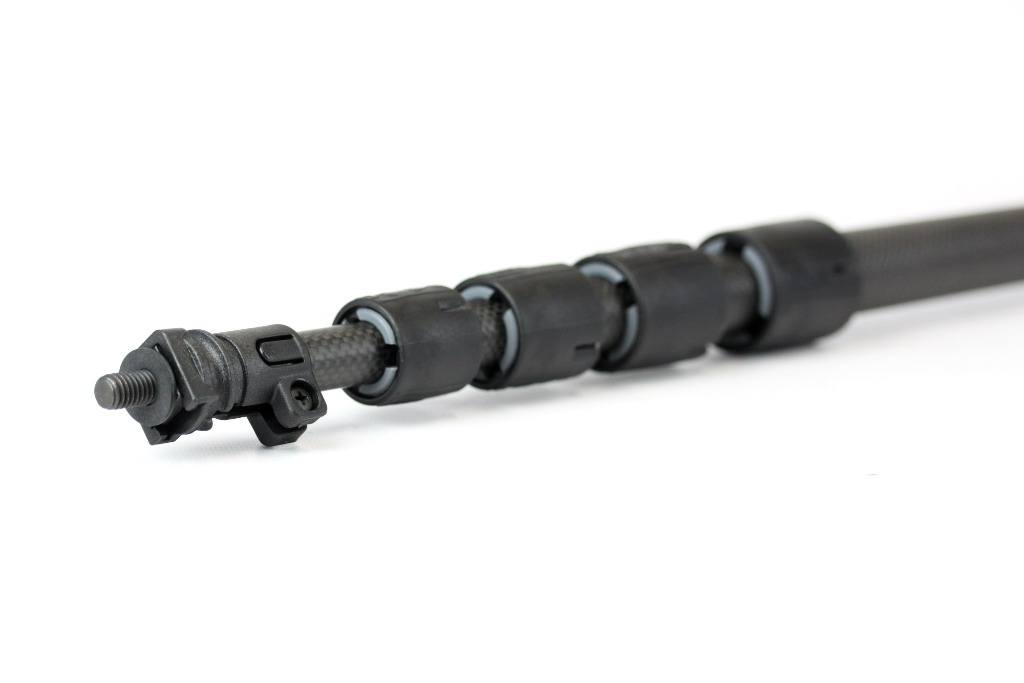 BoompolePro - весит всего 535 грамма, ее длина от 82 см до 3м. Каждое из 5 колен удочки сделано из углеродного волокна (карбона), что делает ее чрезвычайно легкой и прочной. Колена легко фиксируются кольцами с механизмом твист-лок с зажимом в полоборота. Модель BoompolePro предназначена для использования с профессиональными микрофонами-пушками, такими как RODENTG3 и NTG8, а также ветрозащитой Blimp.