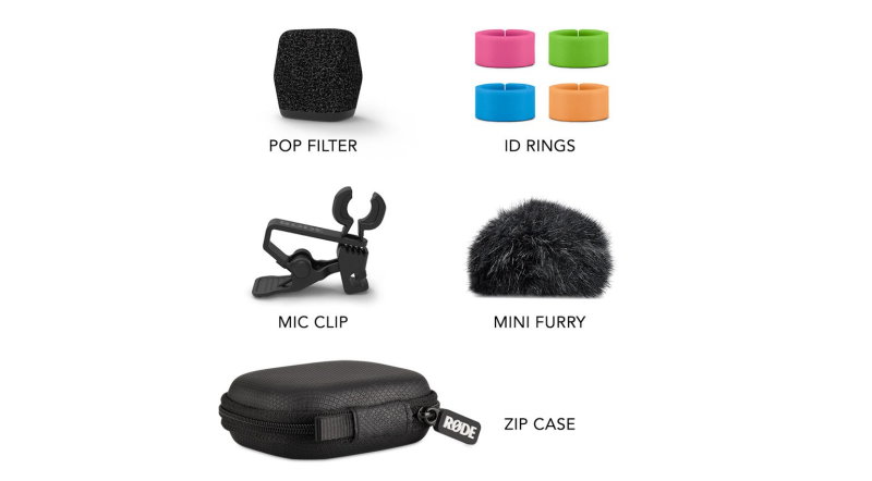 - Набор аксессуаров: поп-фильтр, меховая ветрозащита, зажим, цветные кольца, футляр