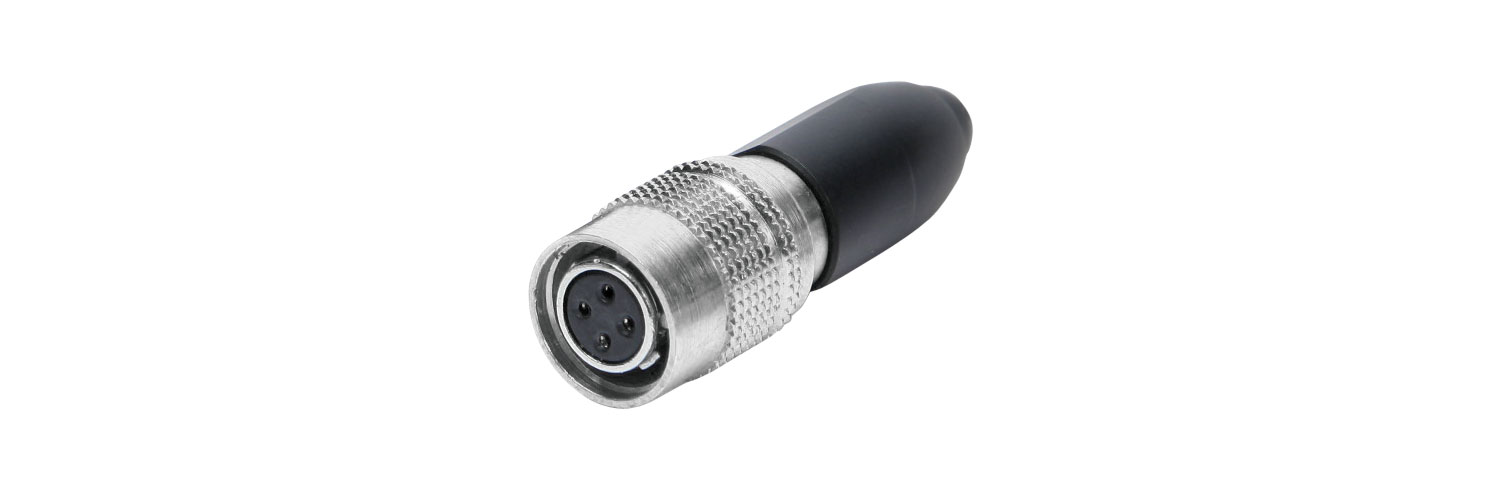 Коннектор MICON-4 с фиксатором предназначен для подключения к поясным радиопередатчикам Audio-Technica UniPak серий 1800, 2000 и 3000.