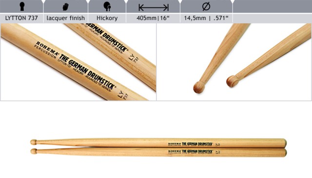 Барабанні палички з горіха, Rounded Tip Series, модель Lytton 737