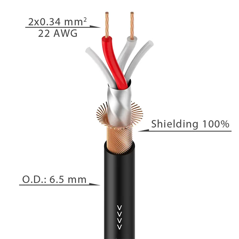 Кабель DMX002 2x0.35 мм2, діаметр 6.5 мм, 100 м, роз'єми: RX3M-NT- RX3FD-NT, колір: чорний