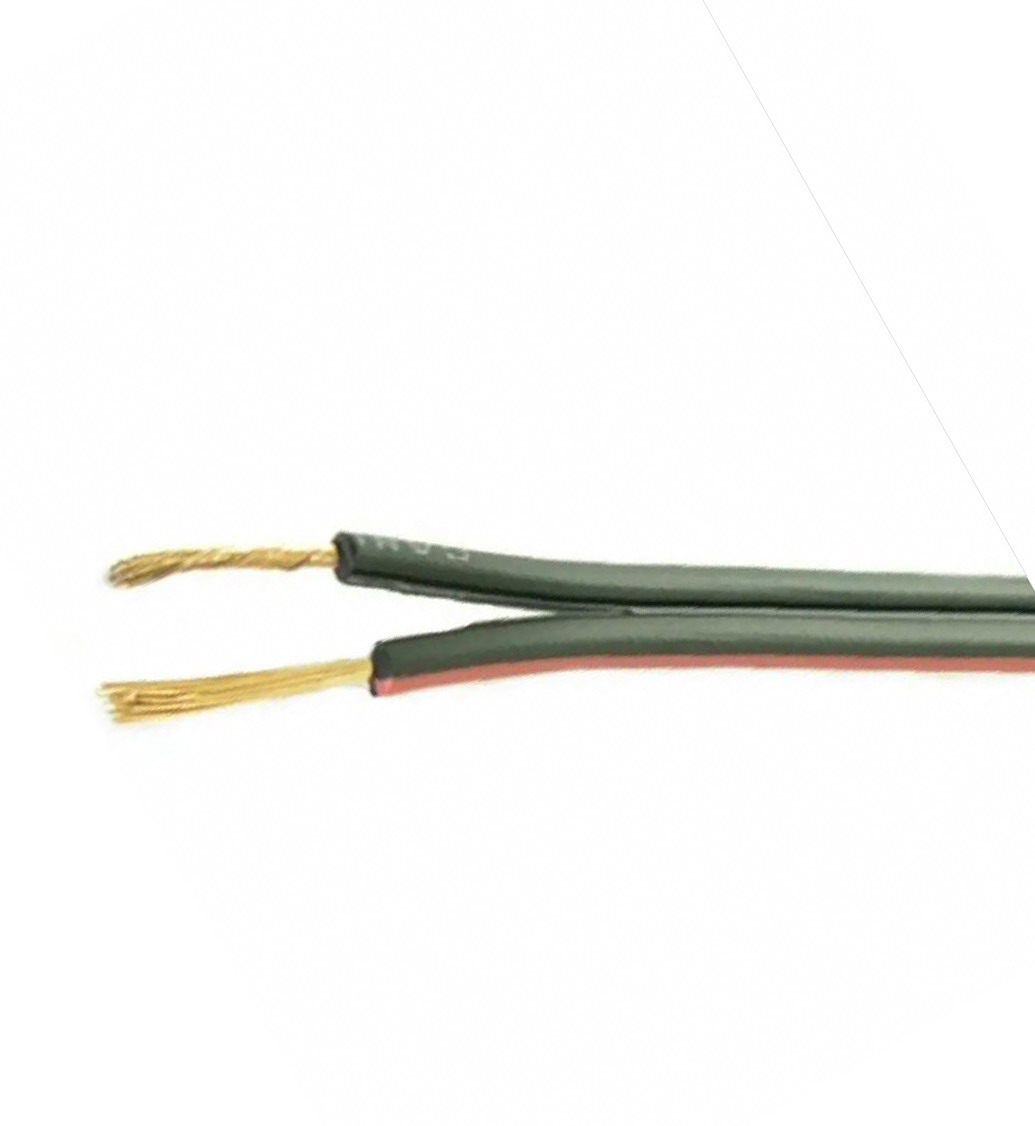 2-х жильный акустический кабель с параллельным расположением проводников, сечение 2х0.50 мм², Ø-2x4 мм, оболочка PVC (поливинилхлорид), цвет: черный/черный с красной полоской.