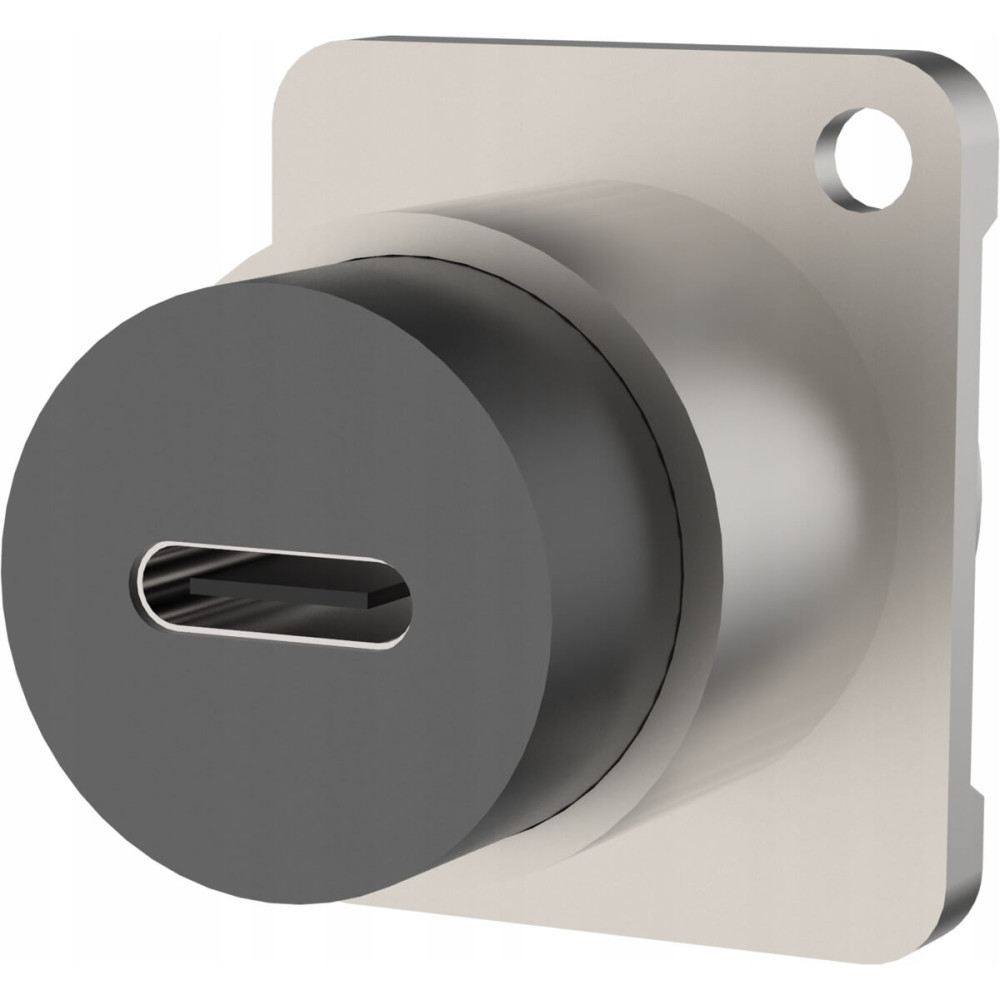 Проходной USB-С порт, панельный, D-формфактор, передача до 5 Гбит/с, питание: 5V/2.1А-2.4А, сопротивление проводника: менее 5 Ом/изоляция: более 10 МОм, металлический корпус черного цвета.
