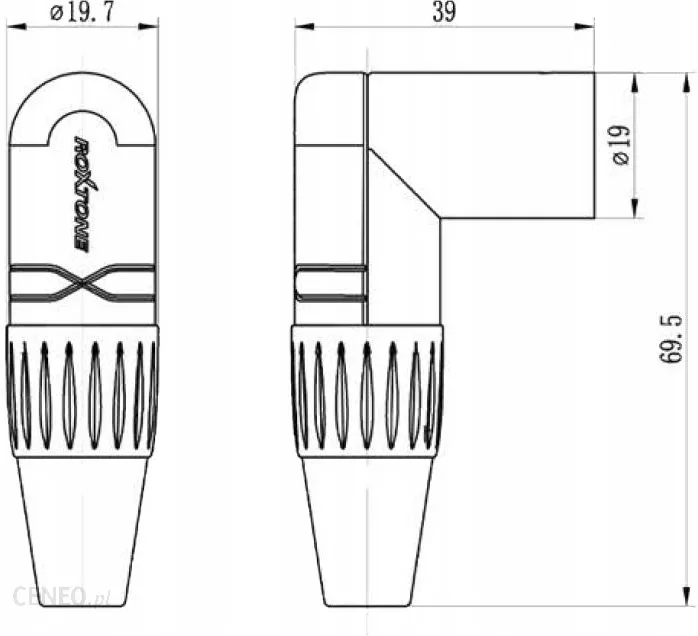 Угловой XLR male (папа), 3-полюсный, корпус: никель-цинковый сплав, контакты: луженые, Ø кабеля: 3-7 мм.