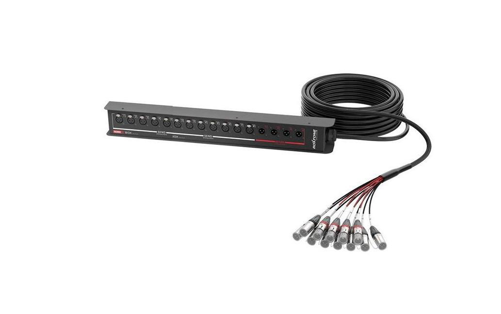 Мультикор на 16 каналов, 12 XLR входов female, 4 возврата XLR male, длина 15 м, кабель TCC 0.14 мм², полное экранирование.