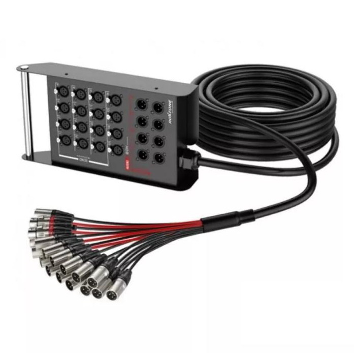 Мультикор на 24 каналов, 16 XLR входов female, 8 возвратов XLR male, длина 30 м, кабель TCC 0.14 мм², полное экранирование, размер stagebox: 365x172x55 мм.