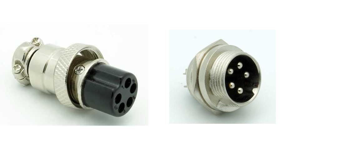 Комплект "папа" - "мама" 5-контактный кабельный коннектор М16 с фиксатором, под пайку (сечение провода 22AWG), под панель диаметром 16 мм и стенкой не более 6 мм, напряжение/ток до 250V переменного/5 Amp.