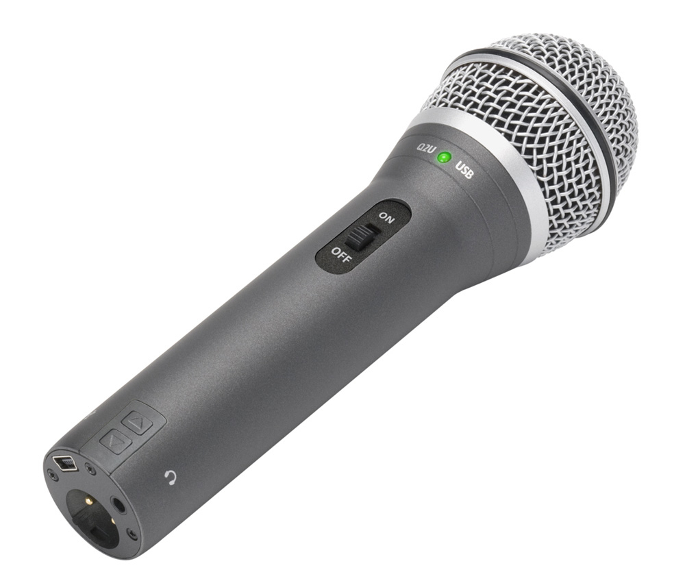 Q2U - це динамічний мікрофон, оснащений стандартним XLR виходом і вбудованим USB інтерфейсом, що дозволяє підключати його до будь-якого мікшерного пульта та комп'ютера з USB входом. Завдяки спеціальному перемикачу можна контролювати наявність сигналу на XLR виході, що дає змогу виступати і одночасно записуватися на комп'ютер.