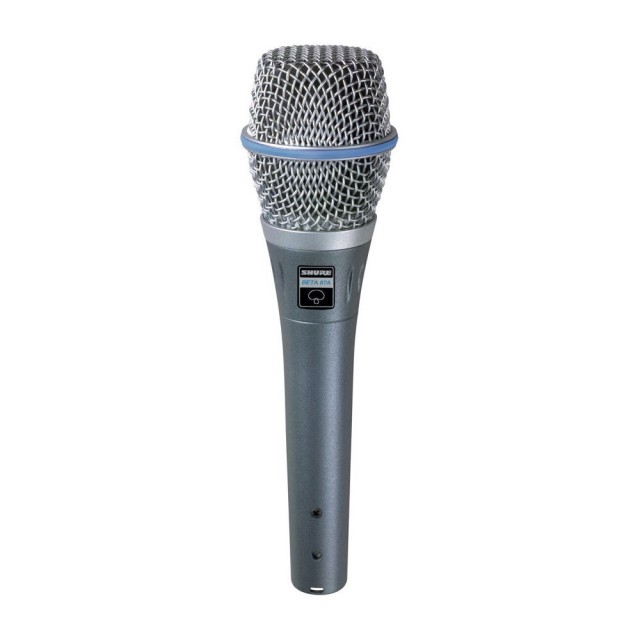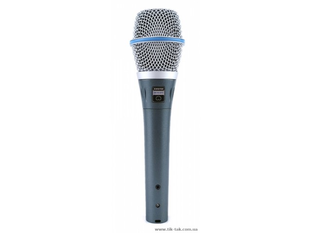 Вокальный динамический микрофон с держателем, направленность: суперкардиоида, АЧХ 50 Гц - 15 кГц, сопротивление 150 Ω, чувствительность: −51 dBV/Pa (2.8 mV), размер: 50х160 мм, вес: 278 г.