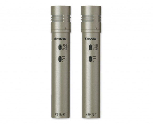 Подобранная стерео пара студийных конденсаторных инструментальных микрофонов Shure KSM137 SL с кейсом и ветрозащитами.