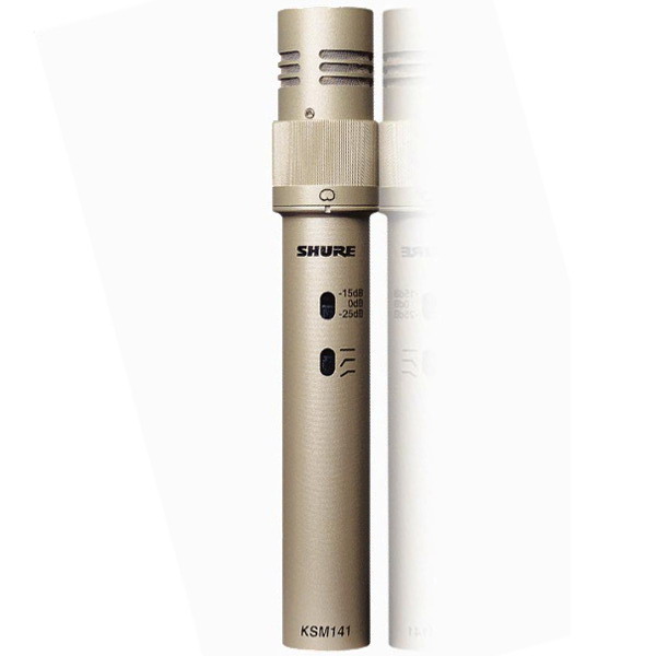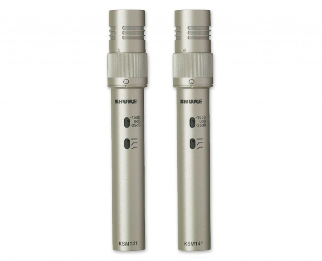 Подобранная стерео пара студийных конденсаторных инструментальных микрофонов Shure KSM141 SL с кейсом, держателями и ветрозащитами.