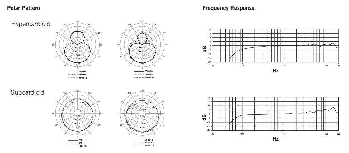 - 2 диаграммы направленности (гиперкардиоидная и субкардиоидная)
