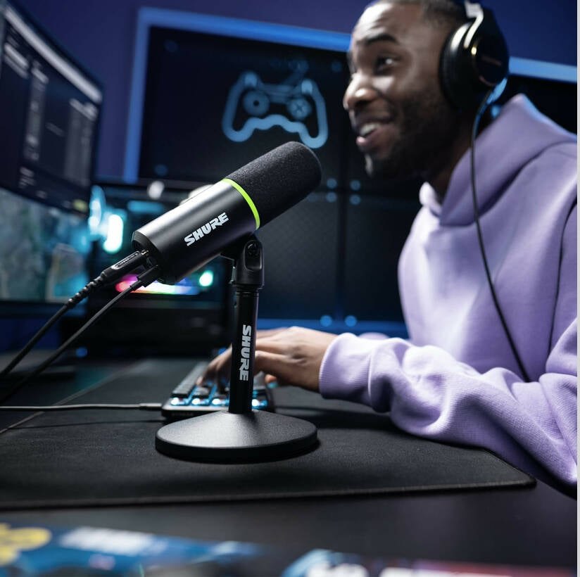 Приготуйтеся до аудіо, що змінює правила гри, з USB ігровим мікрофоном Shure MV6. Розроблений для того, щоб зробити професійне аудіо простим для геймерів та стримерів, MV6 наповнений функціями, такими як технологія ізоляції голосу, режим автоматичного рівня, Digital Popper Stopper™ та реал-тайм шумозаглушувач. З підключенням USB-C для будь-якого ПК, Mac або мобільного телефону та безкоштовним додатком MOTIV Mix™ для налаштування вашого звуку, досягнення бездоганного аудіо ніколи не було таким простим.