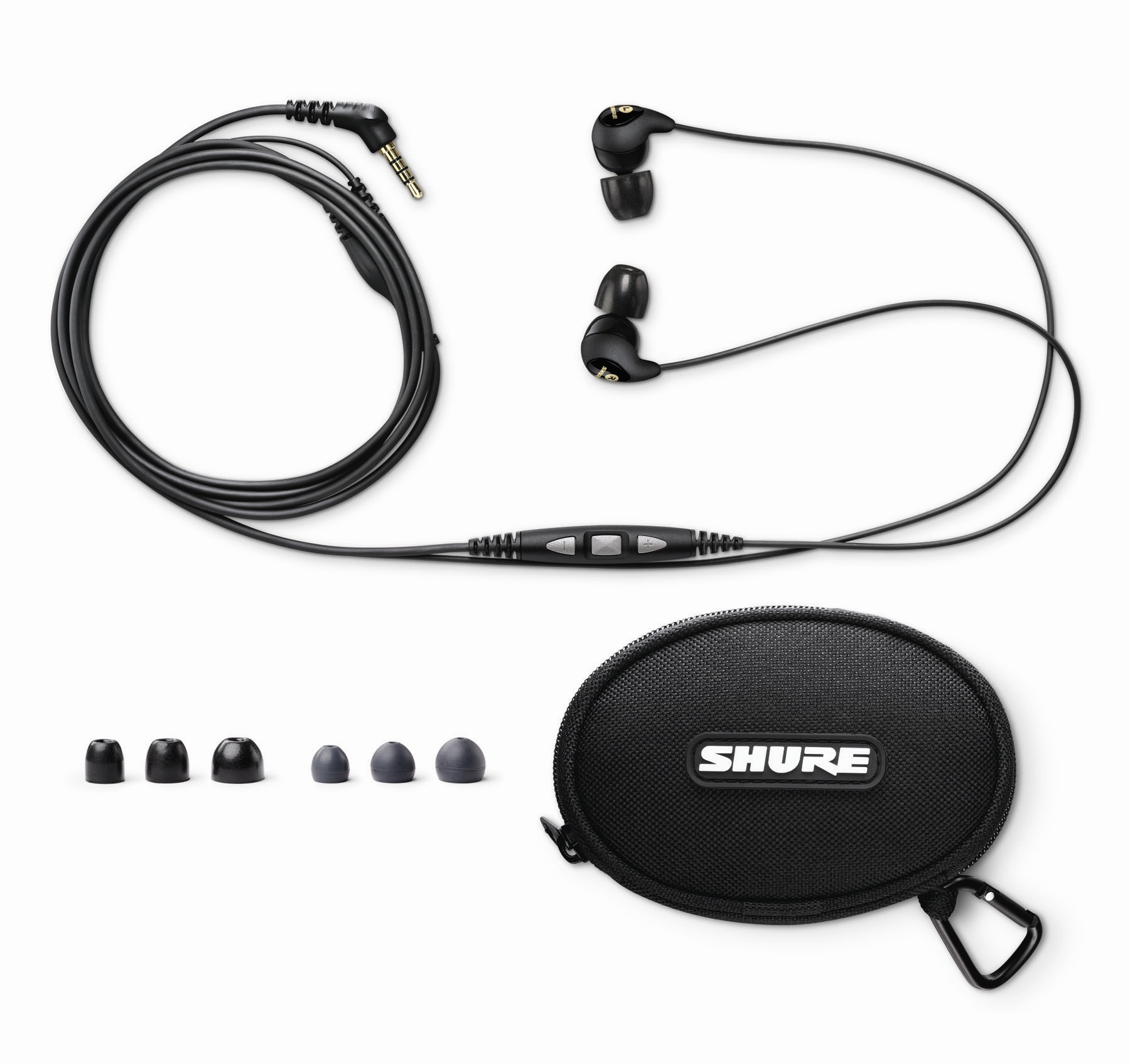 Каждая пара наушников серии SE Shure комплектуется набором звукоизолирующих ушных вставок, блокирующих внешний шум и обеспечивающих комфортное прослушивание. Так как внутренняя форма уха очень индивидуальна, в комплект входят ушные вставки трех разных размеров (S, M, L).