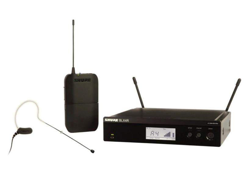 Комплект одноканальной радиоприемник BLX4 с напоясным передатчиком BLX1 и миниатюрным наушным микрофоном MX153, оперируемые частоты: 524-865 МГц, радиус действия до 91 м, время работы 14 часов.