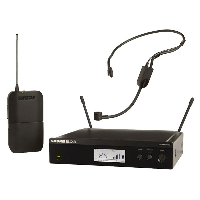 Одноканальный микрофонный радиоприемник BLX4 с поясным передатчиком BLX1 и головным микрофоном PGA31, оперируемые частоты: 524-865 МГц, радиус действия до 91 м, время работы до 14 часов.