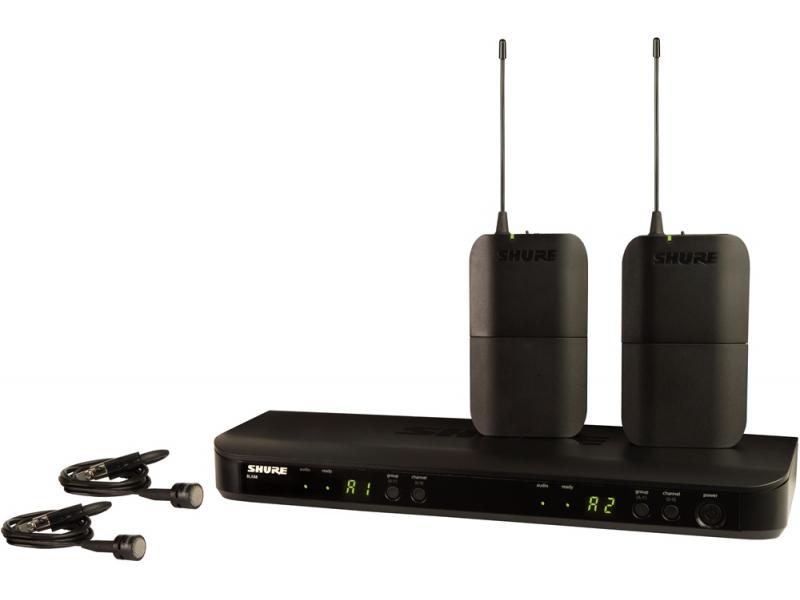 2-канальный радиоприемник BLX88 с 2-я петличными микрофонами PG185, TA4F коннектор, оперируемые частоты: 524-865 МГц, радиус действия до 91 м, время работы до 14 ч.